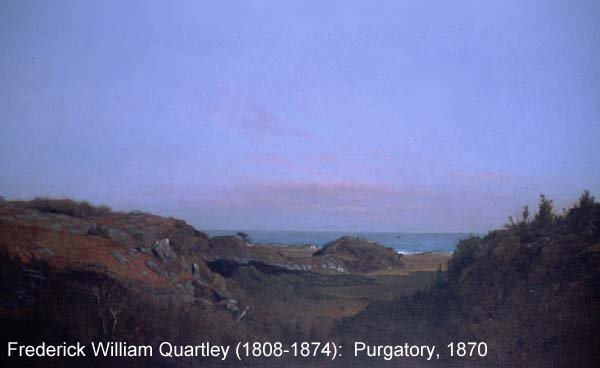 Frederick William Quartley (1808-1874), Purgatory, 1870, Colored wood engraving on paper, 9 1/2 x 6 3/4 inches, Collection of the Redwood Library and Athenaeum (RLC.PAP.MISC.223). First published in Appleton’s Journal, vol. 3, no. 43, January 22, 1870, page 101; subsequently used in 1872 in the serial Picturesque America, part 16, page 371. Born in Bath, England, Quartley took up wood engraving at age sixteen and studied in Wales and Paris. He emigrated to America in 1851 after the death of his wife, and settled in Peekskill, New York. He provided illustrations for a number of publishers, including Appleton & Company, publishers of Appleton’s Monthly and Picturesque America (1872).
